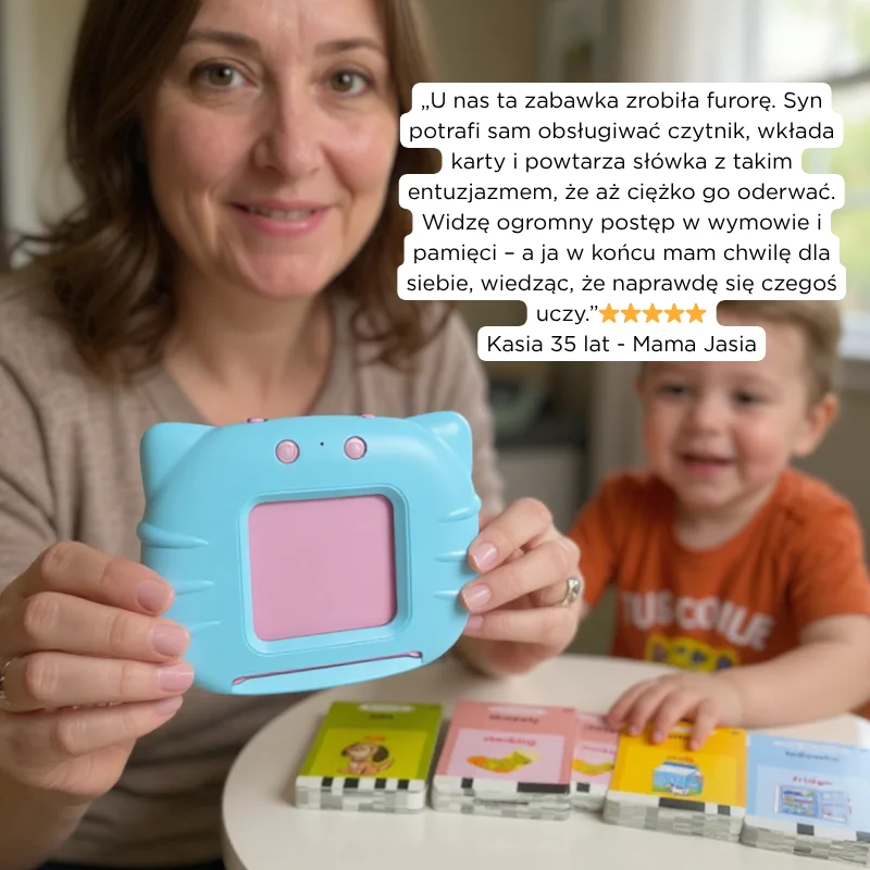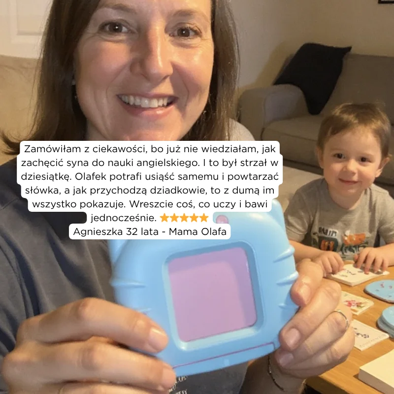 Świetny produkt, dzieciaki bawią się razem i uczą bez żadnych kłótni. Czytnik jest prosty w obsłudze, nawet dla trzylatka. Podoba mi się, że nie ma ekranu, a nauka idzie naturalnie.